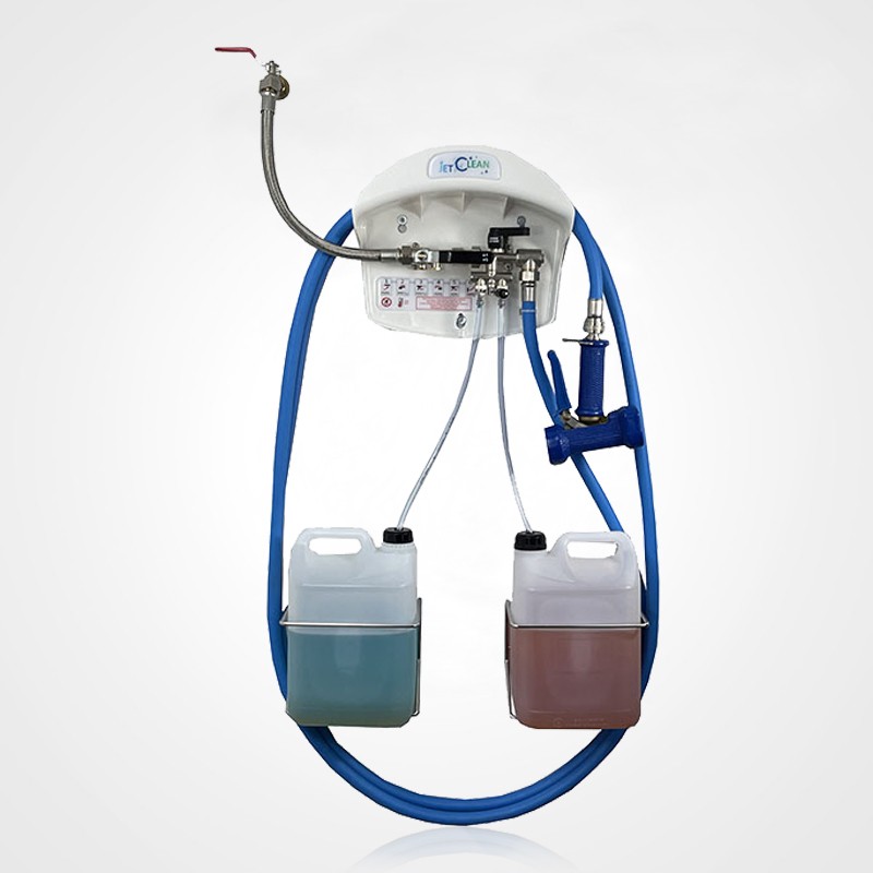La centrale de nettoyage et de désinfection 2 produit Jetclean est adaptée pour une utilisation dans les cuisines professionnelles et les espaces de stockage alimentaire grâce à son tuyau de lavage Easy Clean conforme à la norme HACCP.